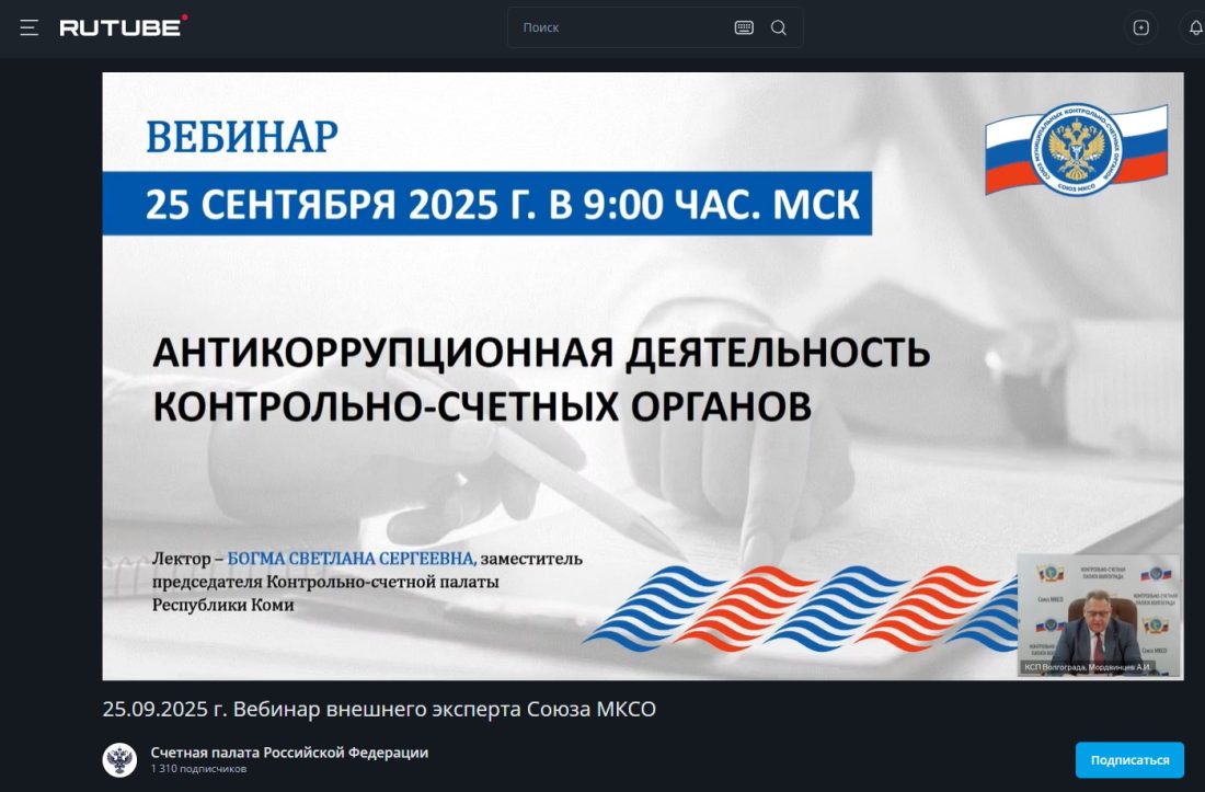 Работники Контрольно-счетной палаты городского округа Долгопрудный 25 сентября 2025 года приняли участие в круглом столе Союза муниципальных контрольно-счетных органов на тему: «Антикоррупционная деятельность контрольно-счетных органов» в формате видеоконференции.