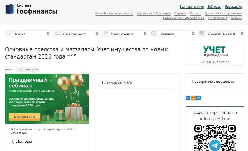 Работники Контрольно-счетной палаты городского округа Долгопрудный 17 февраля 2026 года приняли участие в практическом вебинаре на тему «Основные средства и матзапасы. Учет имущества по новым стандартам 2026 года». Вебинар проводился на платформе системы Госфинансы. Лектор: Плавник Радион Борисович — эксперт по бюджетному учету, аттестованный преподаватель, действительный член Палаты налоговых консультантов России.
