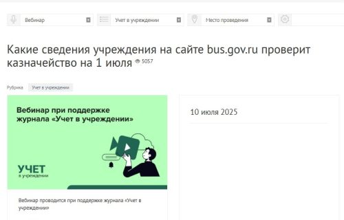 Работники Контрольно-счетной палаты городского округа Долгопрудный 10 июля 2025 года приняли участие в практическом вебинаре на тему «Какие сведения учреждения на сайте bus.gov.ru проверит казначейство на 1 июля». Вебинар проводился на платформе системы Госфинансы. Лектор: Черненкова Светлана Владимировна, начальник отдела методического обеспечения ведения официального сайта для размещения информации о государственных и муниципальных учреждениях Управления бюджетного учета и отчетности Федерального казначейства.