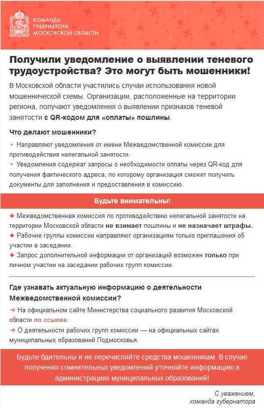Получили уведомление о выявлении теневого трудоустройства? Это могут быть мошенники!